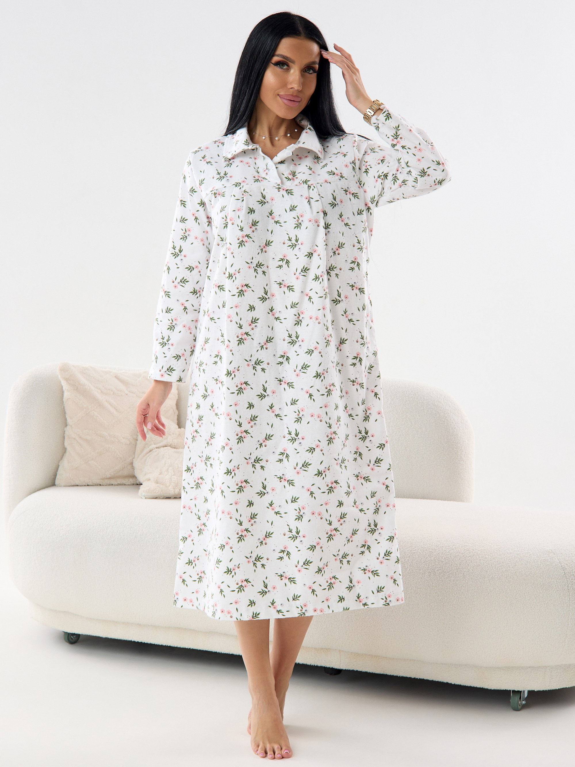 Ночная сорочка женская из фланели Цветы