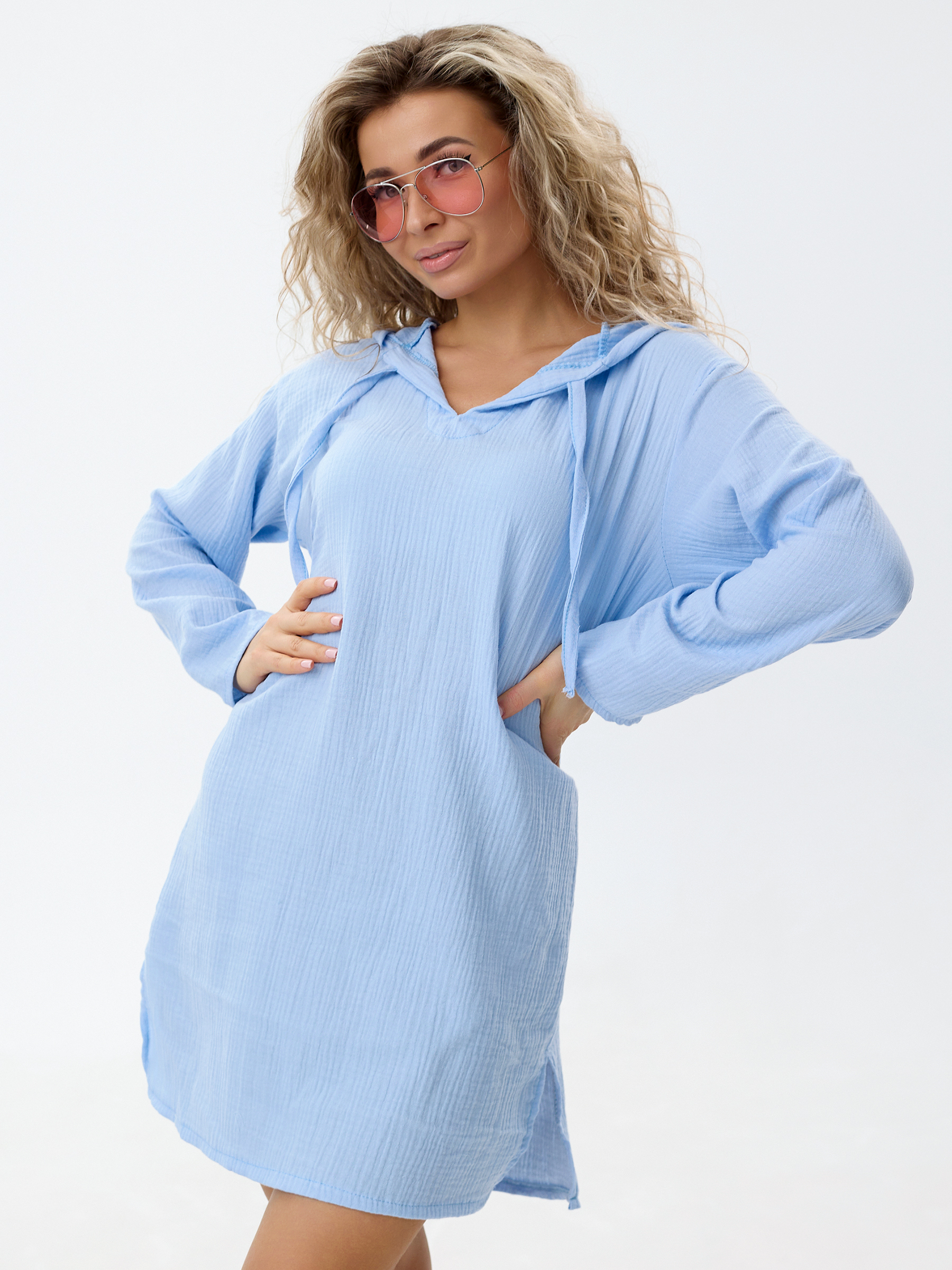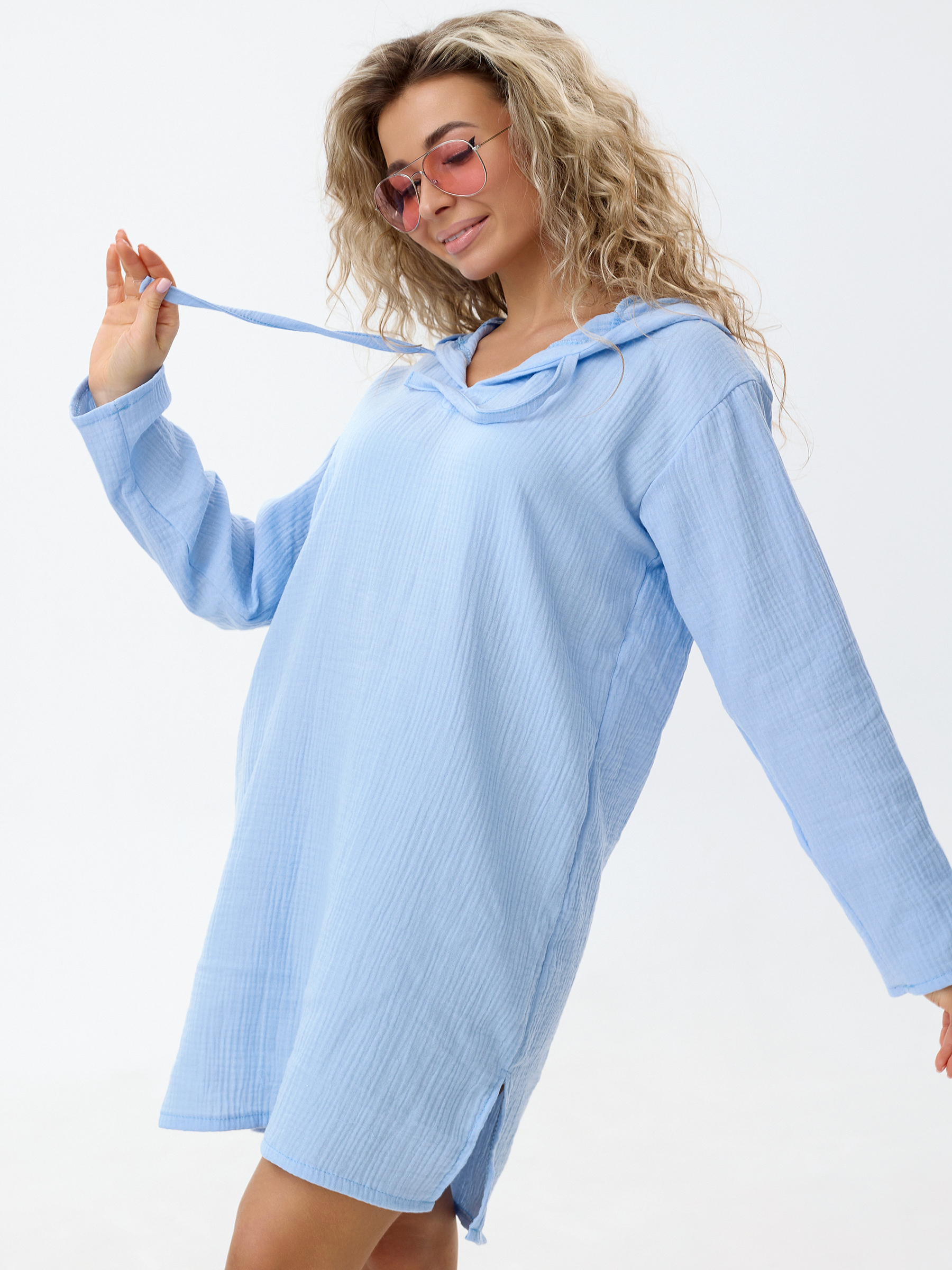 Туника из муслина женская голубая